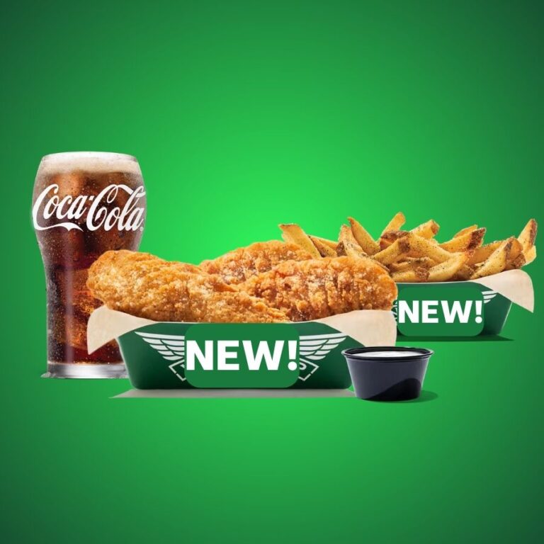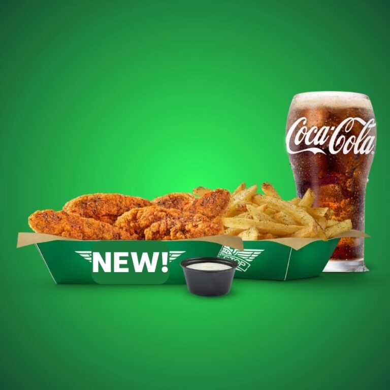 3 of our NEW Crispy Tenders in 1 flavor, regular fries or veggie sticks, 1 dip and a 20 oz drink